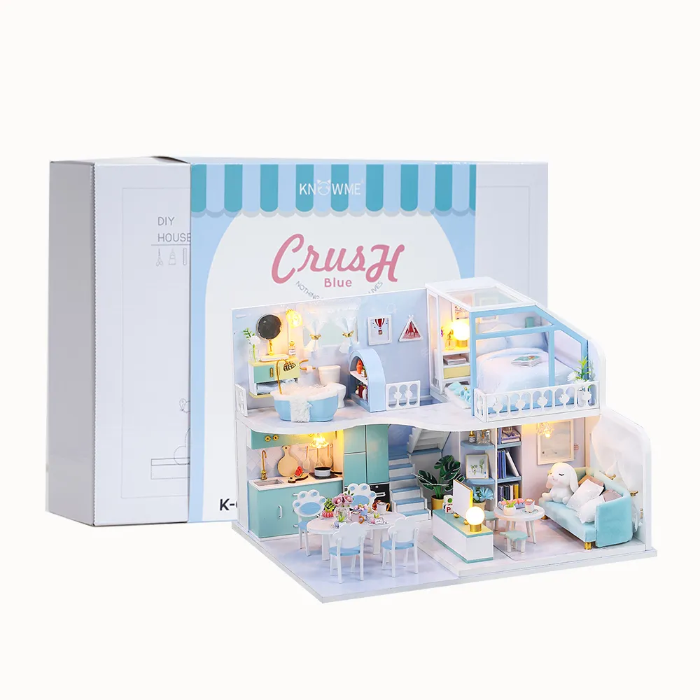 Le Crush Blue K‑057 est un kit DIY de maison miniature au style loft moderne et poétique, idéal pour les amateurs de loisirs créatifs et d’univers miniatures au design doux et original.