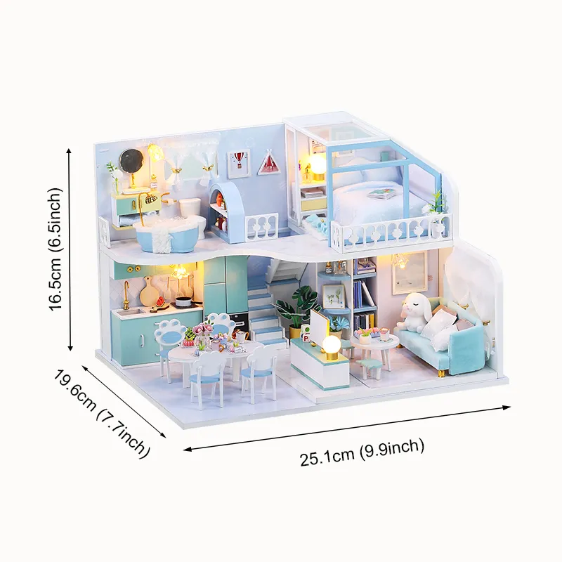 Laissez-vous séduire par l’esthétique douce et imaginative de la Crush Blue – Maison Miniature DIY K‑057, un kit créatif qui invite à construire un intérieur miniature au style loft, à la fois moderne, rêveur et plein de charme. Ce modèle est pensé pour stimuler la créativité tout en offrant un moment de détente et de plaisir manuel.