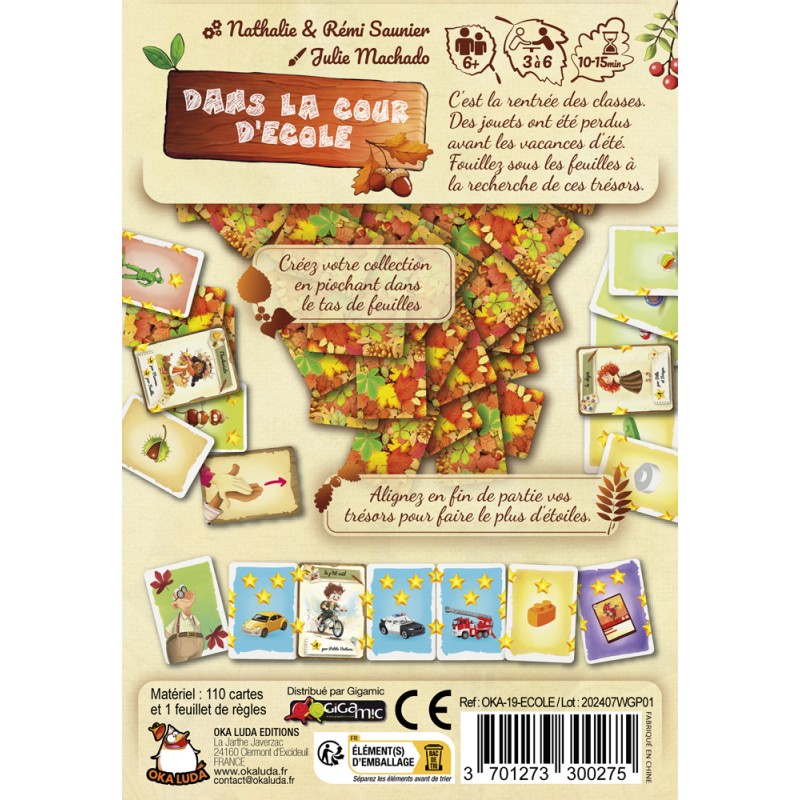 C’est la rentrée des classes et l’automne recouvre la cour d’école d’un tapis de feuilles mortes… Mais sous ces feuilles se cachent de petits jouets perdus avant les vacances d’été ! À vous de fouiller, de collecter et de bluffer pour réaliser la meilleure collection et remporter la partie.