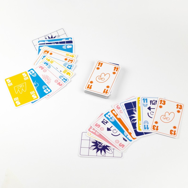 Double Face est un jeu de plis original, fun et imprévisible qui apporte un vent de folie aux classiques jeux de cartes. Il se joue avec 52 cartes de couleur, chacune ayant une face claire et une face sombre, numérotées de 1 à 13. Mais attention… certaines cartes ne demandent qu’à renverser la partie !