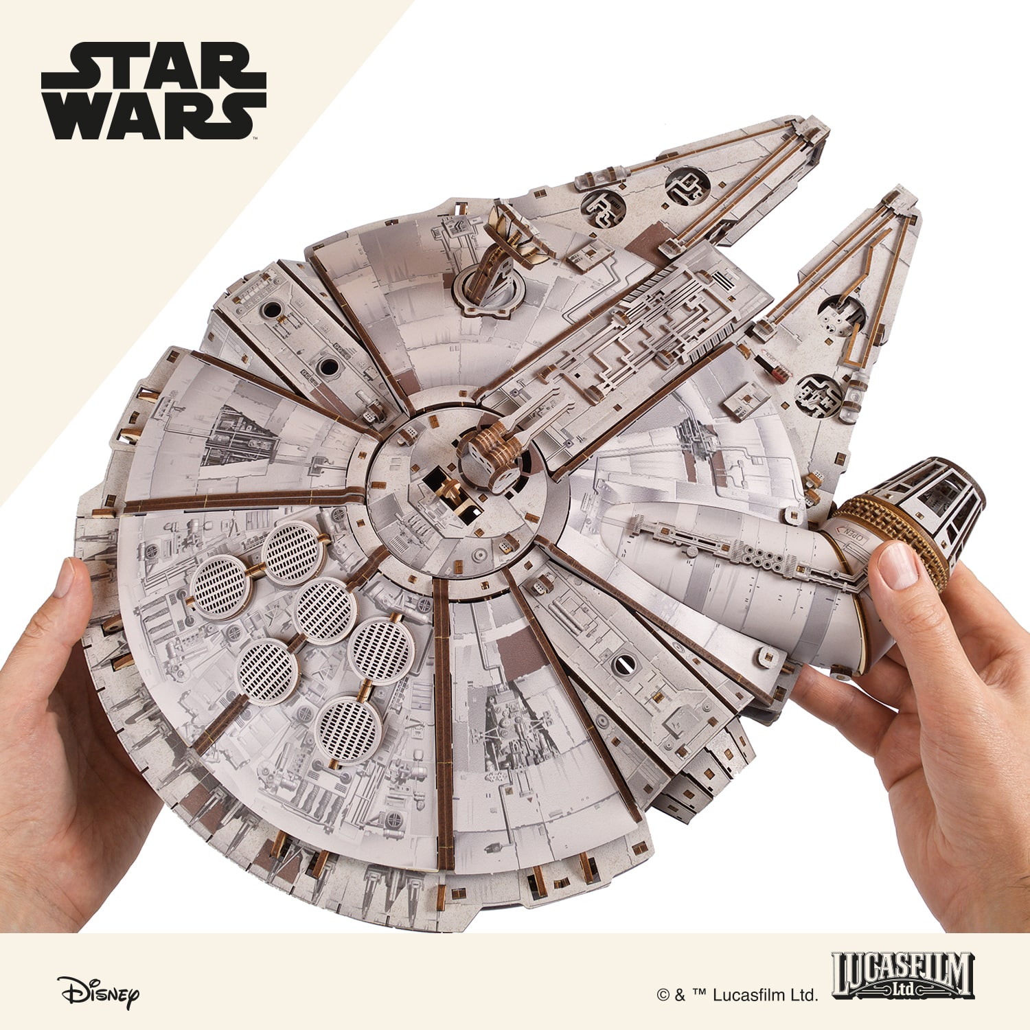 Découvrez le Faucon Millenium™ – Puzzle 3D en bois Ugears, une reproduction spectaculaire du vaisseau emblématique de Star Wars™. Ce modèle sous licence officielle allie ingénierie, design et passion pour offrir une expérience de montage immersive et inoubliable.