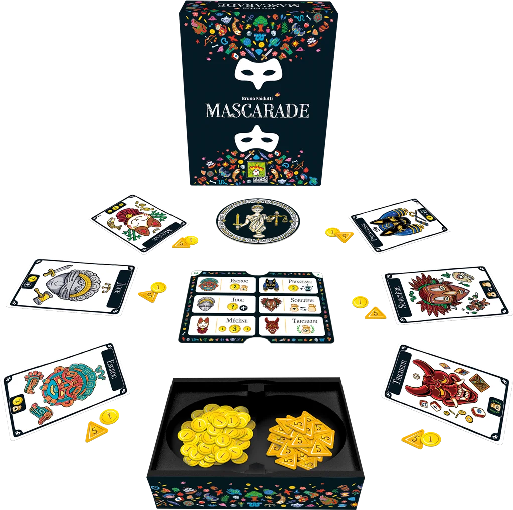 Entrez dans la Mascarade, un jeu d’ambiance et de bluff où les apparences sont toujours trompeuses. Signée Bruno Faidutti, cette nouvelle version modernise un classique tout en conservant son esprit : manipuler, mentir, et essayer de deviner qui porte quel masque… même lorsque vous n’êtes plus totalement sûr du vôtre.