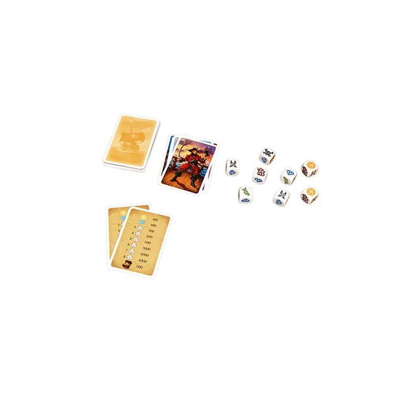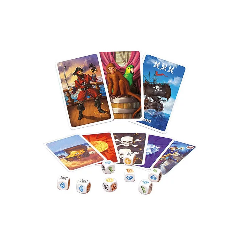 Ajoutez du piment aux parties avec les cartes Pirate, qui viennent bouleverser vos plans en modifiant vos tirages ou en piégeant vos concurrents. Bluff, stratégie et audace seront indispensables pour devenir le pirate le plus riche !