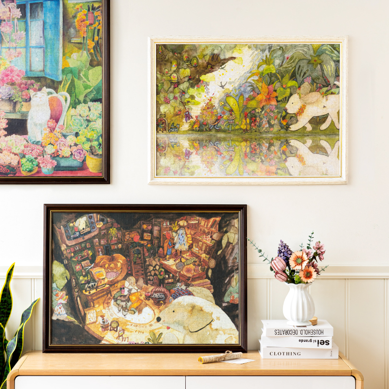 Une fois terminé, le puzzle révèle un visuel généreux d’environ 50 × 70 cm, parfait pour être encadré et transformé en élément de décoration original. Dans une chambre, un salon ou un espace créatif, le Forest Party apporte une touche de fantaisie et de chaleur.