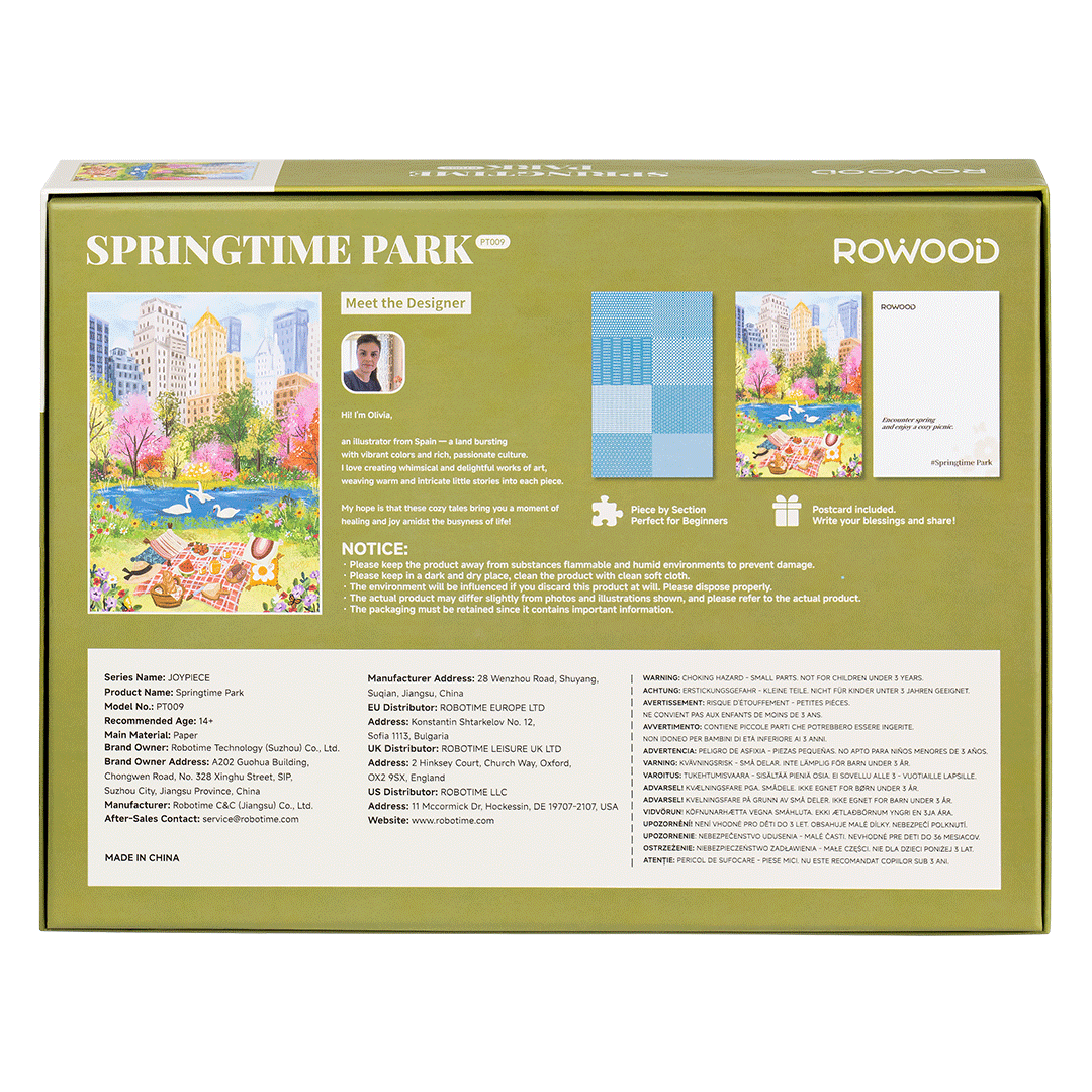 Offrez‑vous une véritable parenthèse de calme avec le Rolife Springtime Park, un puzzle 1000 pièces qui capture toute la douceur d’un parc au printemps, niché en bordure de ville.