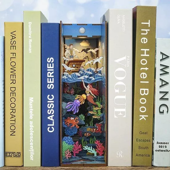 Le Book Nook DIY La Petite Sirène – Tone-Cheer TQ112 est une invitation à plonger dans un univers marin enchanteur directement au cœur de votre bibliothèque. Pensé comme un diorama miniature, ce kit transforme un simple espace entre deux livres en une scène immersive inspirée du célèbre conte. Grâce à sa construction en bois prédécoupé, ses différents niveaux de décor et son éclairage intégré, il apporte une profondeur étonnante et une touche artistique originale à votre intérieur.