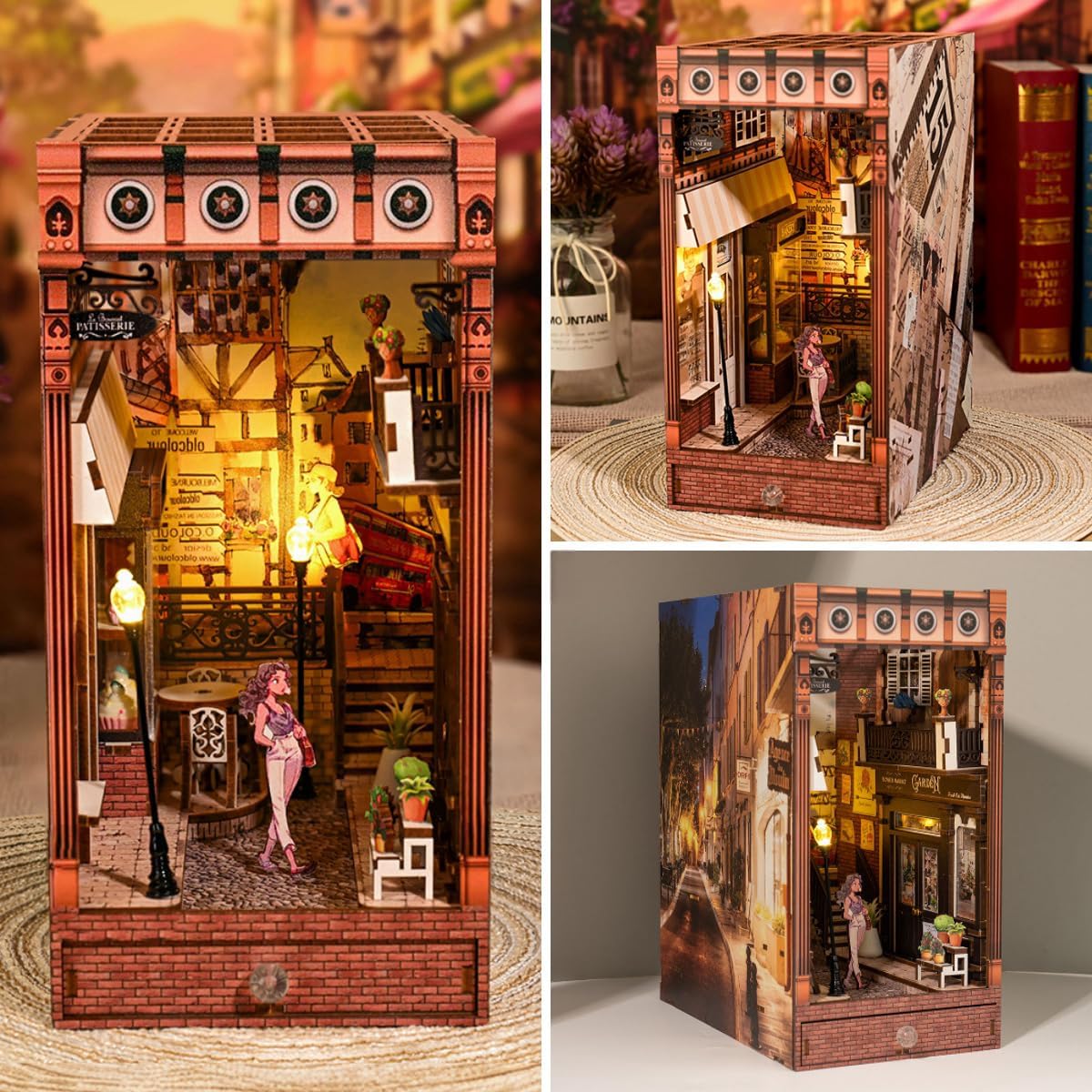 Découvrez le DIY Book Nook Leisurely European Streets, un kit miniature en bois qui vous transporte au cœur des charmantes rues européennes. Ce modèle détaillé est livré entièrement en pièces à assembler, pour une expérience créative immersive, même pour les débutants grâce à une notice en couleurs claire et simple.