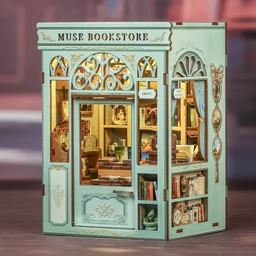 Plonge dans un univers inspirant avec le book nook DIY Muse Bookstore de Cutebee, une véritable scène miniature représentant une librairie chaleureuse et poétique à construire soi-même.